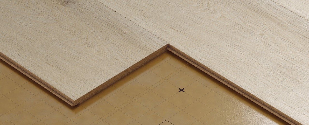 Khi lắp đặt, các tấm ván được ghép với nhau bằng thao tác nghiêng và nhấn nhẹ. Cơ chế “click” này giúp hạn chế việc sử dụng keo và giảm sai sót trong quá trình thi công.