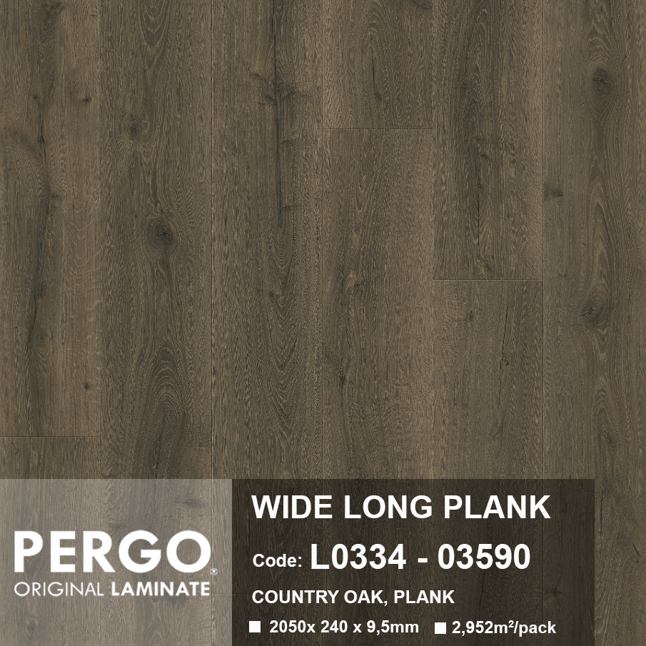 Pergo Wide Long Plank 03590 là dòng sàn gỗ cao cấp với khả năng chống nước bề mặt lên đến 100 giờ. Sản phẩm nổi bật với vân gỗ tự nhiên chân thực và kích thước ván lớn, giúp không gian trở nên rộng rãi và sang trọng hơn. Bề mặt sàn có khả năng chống trầy xước, hạn chế cháy, bạc màu, ẩm mốc và bám bẩn, đồng thời dễ vệ sinh. Ngoài ra, sàn còn giúp giảm tiếng ồn, đạt tiêu chuẩn vật liệu xanh và an toàn cho sức khỏe người sử dụng.